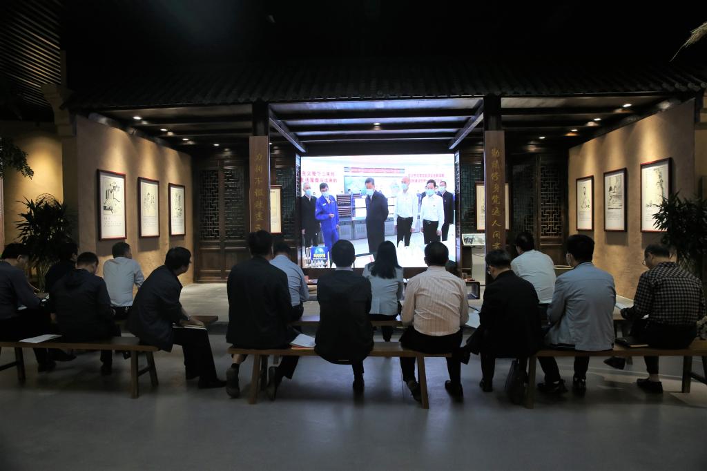在耕讀文化館,全體與會人員坐于耕讀小院,通過LED大屏觀看了習近平總書記在陝西榆林考察新聞報道視頻和中共中央政治局第三十三次集體學習新聞報道視頻。随後,大家認真學習了新華社《習近平在陝西榆林考察時強調:解放思想 改革創新 再接再厲 譜寫陝西高質量發展新篇章》、習近平總書記在2021年秋季學期中央黨校(國家行政學院)中青年幹部培訓班開班儀式上的講話、教育部關于印發《加強和改進涉農高校耕讀教育工作方案》的通知、教育部黨組關于《教育系統深入學習貫徹習近平總書記在兩院院士大會、中國科協第十次全國代表大會上重要講話精神》的通知。